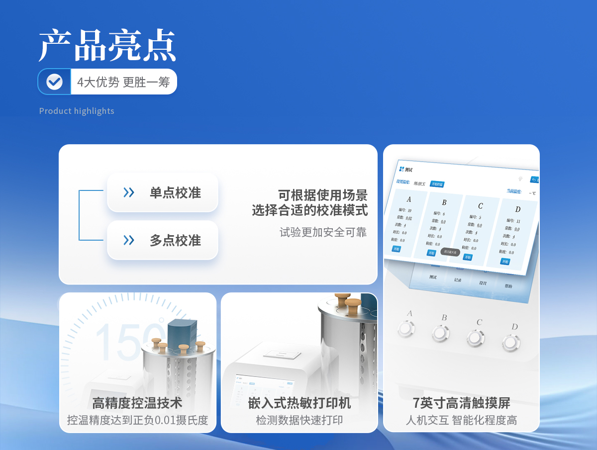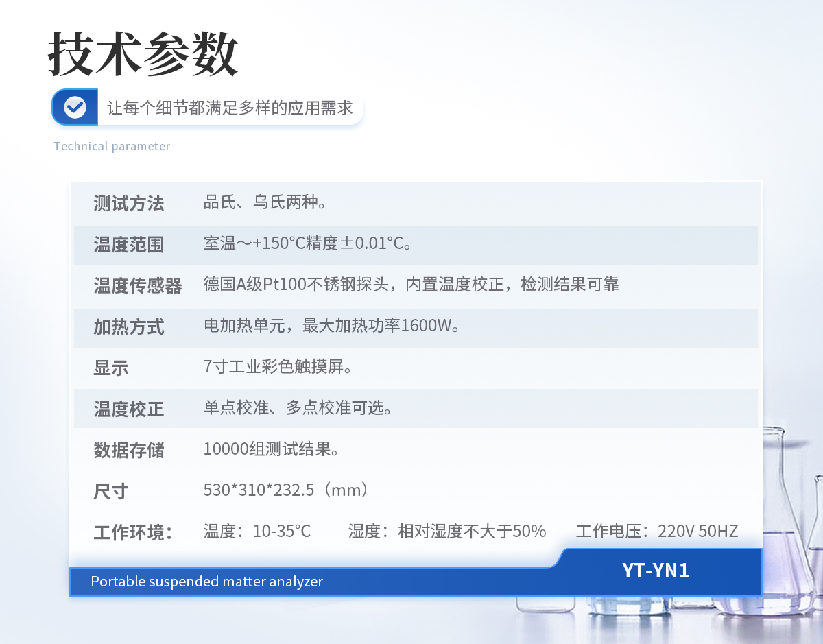 測試方法:品氏、烏氏兩種。 溫度范圍:室溫~+150°C精度±0.01°C。 溫度傳感器:德國A級Pt100不銹鋼探頭,內(nèi)置溫度校正,檢測結(jié)果可靠。 加熱方式:電加熱單元,**加熱功率1600W。 顯示:7寸工業(yè)彩色觸摸屏。 溫度校正:單點(diǎn)校準(zhǔn)、多點(diǎn)校準(zhǔn)可選。 數(shù)據(jù)存儲:10000組測試結(jié)果。 尺寸:530*310*232.5(mm) 工作環(huán)境: 溫 度:10-35℃ 濕 度:相對濕度不大于50% 工作電壓:220V 50HZ