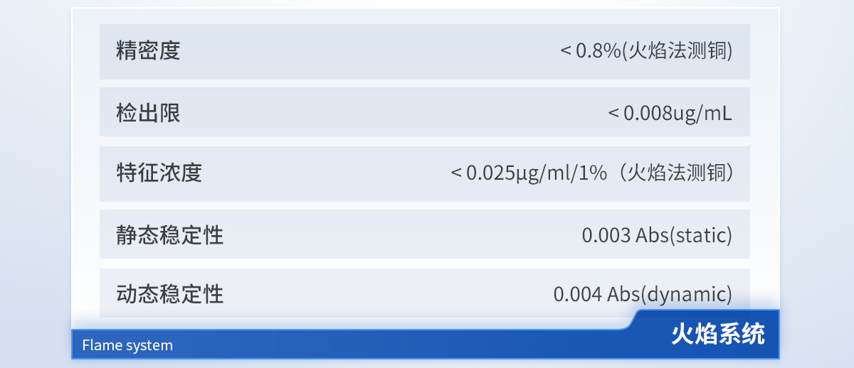 波長范圍:185nm~900nm 自動尋峰設置單色器類型:切爾尼-特納型(Czerny-Turner 型) 光譜帶寬:0.1/0.2/0.4/0.7/1.4 nm 五檔自動切換 光柵閃耀波長:230nm 光柵刻線:1800 線/mm 波長準確度:≤±0.2nm 波長重復性:< 0.10nm 分辨率:優(yōu)于 0.3nm 靜態(tài)基線穩(wěn)定性:0.003 Abs(static) 氘燈背景校正能力:60 倍以上 石墨爐控溫范圍:室溫--3000℃ 石墨爐升溫速率:3000℃/s 石墨爐測鎘(Cd)精密度:≤ 2% 石墨爐測鎘(Cd)特征量:≤ 0.5pg 石墨爐測鎘(Cd)檢出限:≤ 1pg 電源:220V±22V,50Hz±1Hz,5kW(峰值)